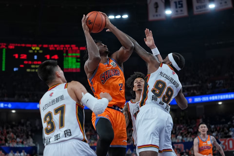 本场比赛,上海大鲨鱼派出王哲林、李弘权、李添荣和双外援洛夫顿、古德温的先发阵容。开场后主队多次进攻失误,客队趁机利用反击打出7比2开局,不过在主队的内线冲击下,客队不到3分钟已经满4次犯规。此后洛夫顿打成2+1,李弘权也投中三分球,大鲨鱼连得6分完成反超。首节大鲨鱼轮番调换阵容,进攻打得并不流畅,罚球命中率也不高,双方战成20比20。